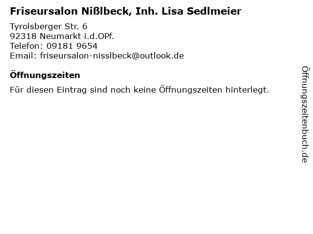 Friseursalon Nisslbeck Offnungszeiten In Neumarkt In Der Oberpfalz Tyrolsberger Str 6 Findeoffen Deutschland